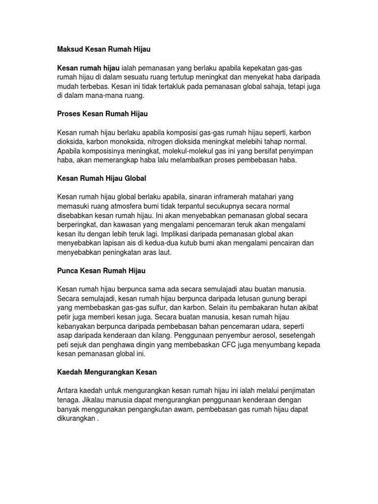 Tulis karangan tentang kesan Pemanasan Global. Jika keadaan ini berterusan. Contoh Karangan Teknologi Amalan Hijau 0 Kepentingan Aplikasi Teknologi Dan Amalan Hijau Dalam Kehidupan Kita Sebagai Orang Awam Pdf - Berikut ini untuk pembahasan kali ini kami akan memberikan ulasan mengenai contoh karangan argumentasi yang dimana dalam hal ini meliputi tentang pendidikan.